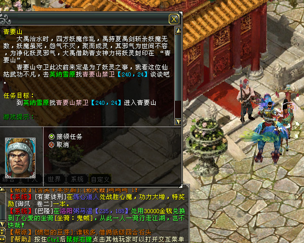 青要山接任务的地点依然是洛阳城,翻开地图,找寻接青要山任务的地方,比较好找哦,因为地图上都有标示的嘛,洛阳斥候,坐标(243,57)出发。